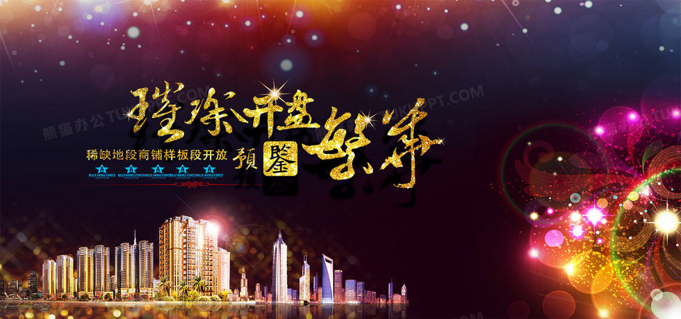 本作品内容为璀璨开盘房地产开盘背景, 格式为 psd, 图片尺寸为1920 x 900, 作品中背景图片无需修改, 源文件无水印,可以直接使用, 欢迎使用熊猫办公。 如认为平台内容涉嫌侵权,可通过邮件:tousu@tukuppt.com提出书面通知,我们将及时处理。