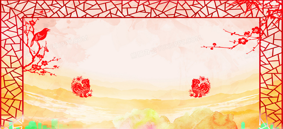 本作品内容为传统中国风剪纸红色背景, 格式为 psd, 图片尺寸为1920 x 874, 作品中背景图片无需修改, 源文件无水印,可以直接使用, 欢迎使用熊猫办公。 如认为平台内容涉嫌侵权,可通过邮件:tousu@tukuppt.com提出书面通知,我们将及时处理。