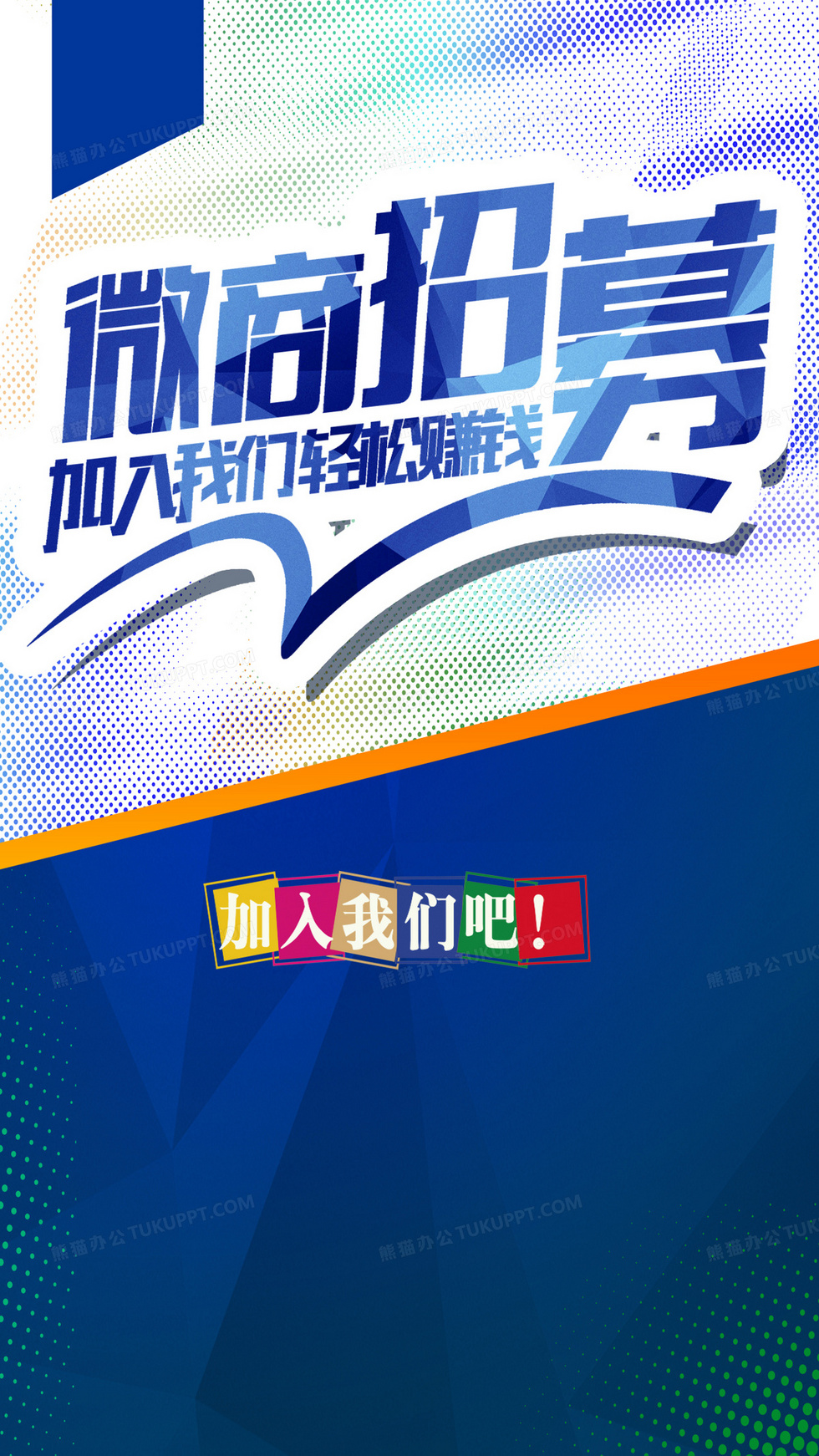 本作品内容为微商招募H5背景, 格式为 psd, 图片尺寸为1242 x 2208, 作品中背景图片无需修改, 源文件无水印,可以直接使用, 欢迎使用熊猫办公。 如认为平台内容涉嫌侵权,可通过邮件:tousu@tukuppt.com提出书面通知,我们将及时处理。