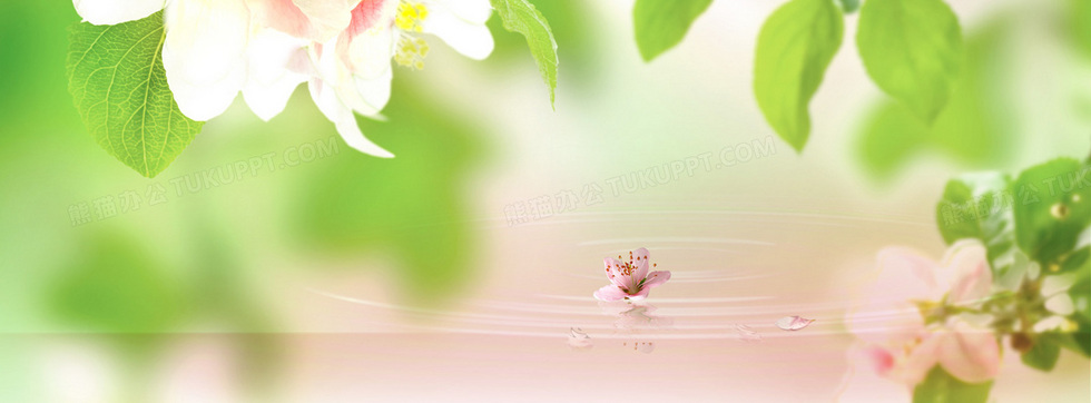 本作品内容为护肤品清新桃花点水唯美背景banner, 格式为 psd, 图片尺寸为1920 x 708, 作品中背景图片无需修改, 源文件无水印,可以直接使用, 欢迎使用熊猫办公。 如认为平台内容涉嫌侵权,可通过邮件:tousu@tukuppt.com提出书面通知,我们将及时处理。