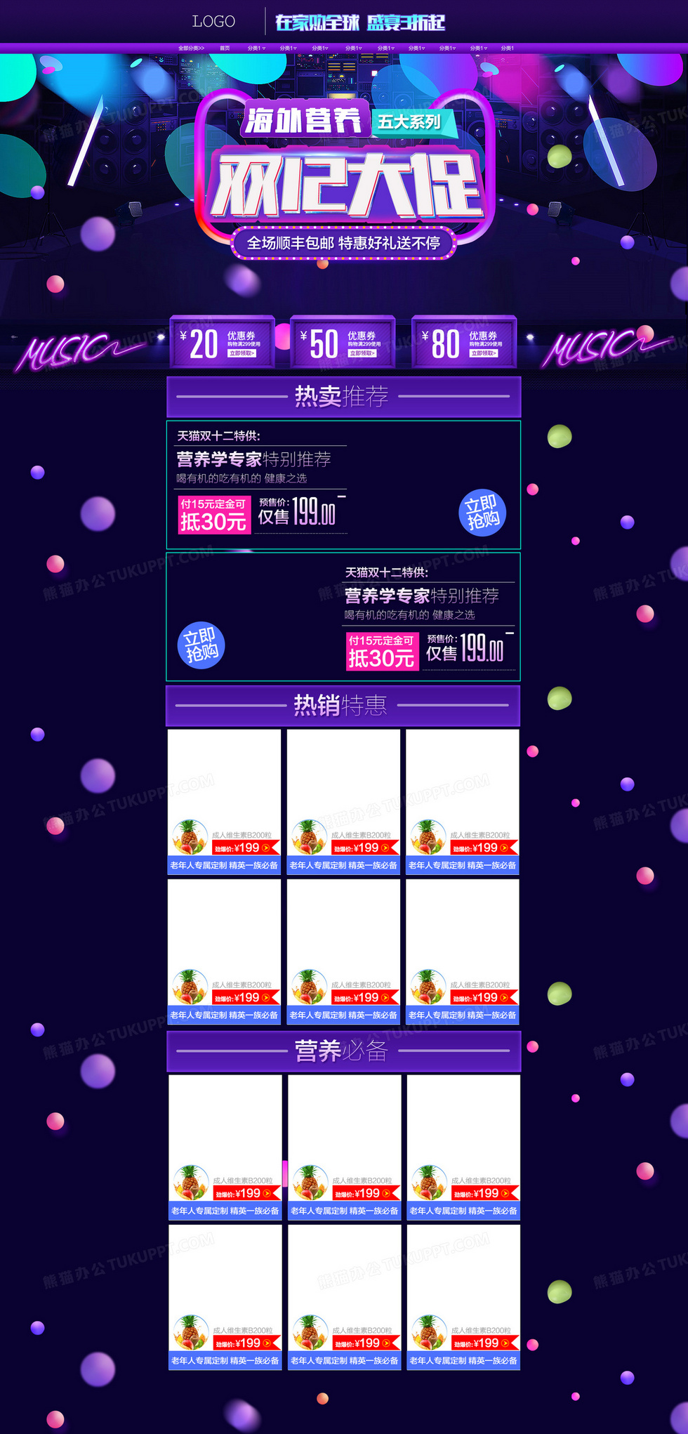 本作品内容为双12首页背景, 格式为 psd, 图片尺寸为1920 x 4001, 作品中背景图片无需修改, 源文件无水印,可以直接使用, 欢迎使用熊猫办公。 如认为平台内容涉嫌侵权,可通过邮件:tousu@tukuppt.com提出书面通知,我们将及时处理。