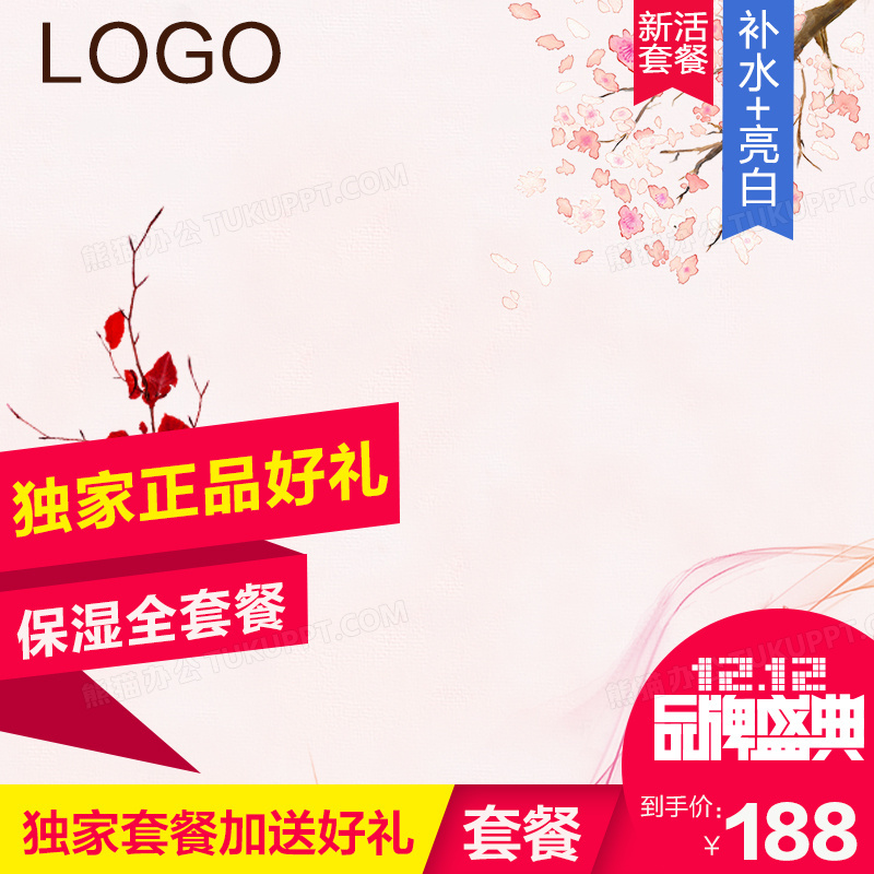 本作品内容为双十二补水化妆品促销主图背景, 格式为 jpg, 图片尺寸为800 x 800, 作品中背景图片无需修改, 源文件无水印,可以直接使用, 欢迎使用熊猫办公。 如认为平台内容涉嫌侵权,可通过邮件:tousu@tukuppt.com提出书面通知,我们将及时处理。