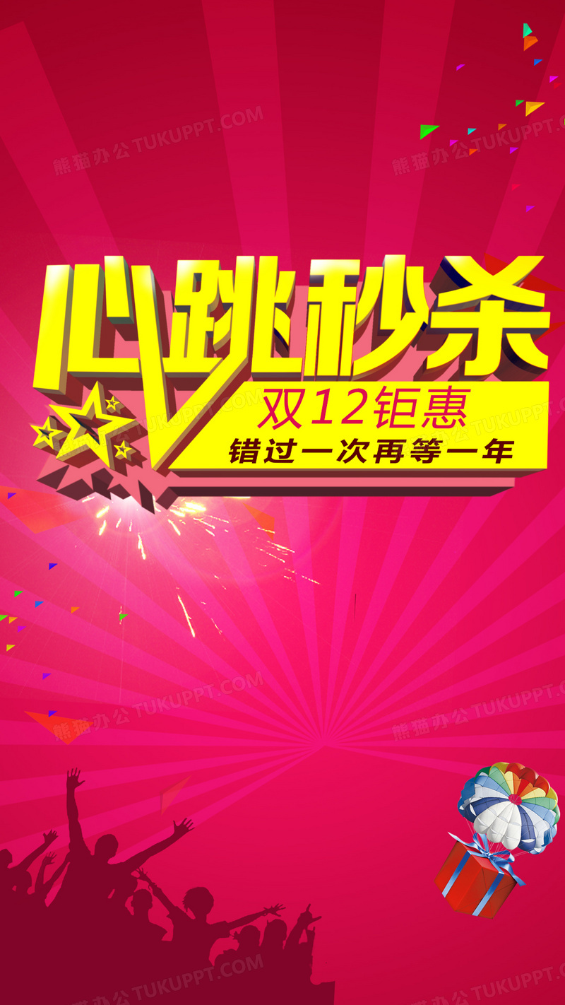 本作品内容为心跳秒杀促销活动背景, 格式为 psd, 图片尺寸为1080 x 1920, 作品中背景图片无需修改, 源文件无水印,可以直接使用, 欢迎使用熊猫办公。 如认为平台内容涉嫌侵权,可通过邮件:tousu@tukuppt.com提出书面通知,我们将及时处理。