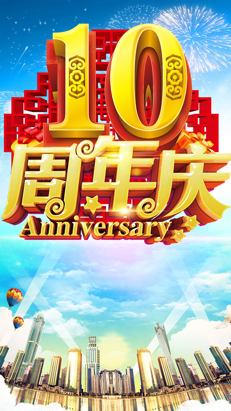 本作品内容为10周年庆促销狂欢H5背景, 格式为 psd, 图片尺寸为1080 x 1920, 作品中背景图片无需修改, 源文件无水印,可以直接使用, 欢迎使用熊猫办公。 如认为平台内容涉嫌侵权,可通过邮件:tousu@tukuppt.com提出书面通知,我们将及时处理。