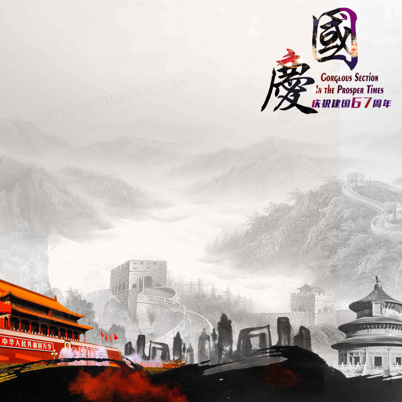 本作品内容为水墨中国风国庆背景图, 格式为 psd, 图片尺寸为800 x 800, 作品中背景图片无需修改, 源文件无水印,可以直接使用, 欢迎使用熊猫办公。 如认为平台内容涉嫌侵权,可通过邮件:tousu@tukuppt.com提出书面通知,我们将及时处理。