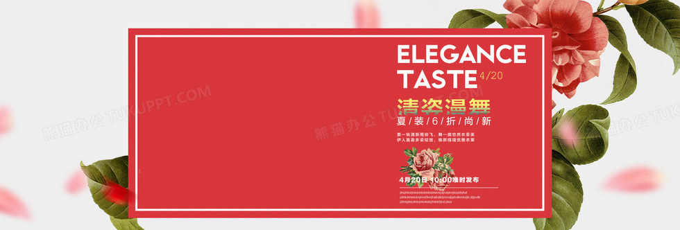 本作品内容为小清新女装服装海报背景素材, 格式为 psd, 图片尺寸为1920 x 650, 作品中背景图片无需修改, 源文件无水印,可以直接使用, 欢迎使用熊猫办公。 如认为平台内容涉嫌侵权,可通过邮件:tousu@tukuppt.com提出书面通知,我们将及时处理。