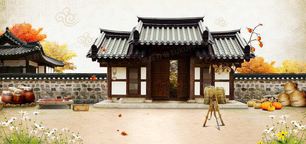 本作品内容为韩国瓦房围墙瓦罐辣椒海报banner, 格式为 psd, 图片尺寸为1920 x 900, 作品中背景图片无需修改, 源文件无水印,可以直接使用, 欢迎使用熊猫办公。 如认为平台内容涉嫌侵权,可通过邮件:tousu@tukuppt.com提出书面通知,我们将及时处理。