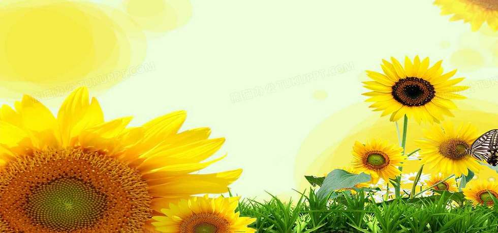 本作品内容为唯美向日葵背景海报, 格式为 psd, 图片尺寸为1920 x 900, 作品中背景图片无需修改, 源文件无水印,可以直接使用, 欢迎使用熊猫办公。 如认为平台内容涉嫌侵权,可通过邮件:tousu@tukuppt.com提出书面通知,我们将及时处理。