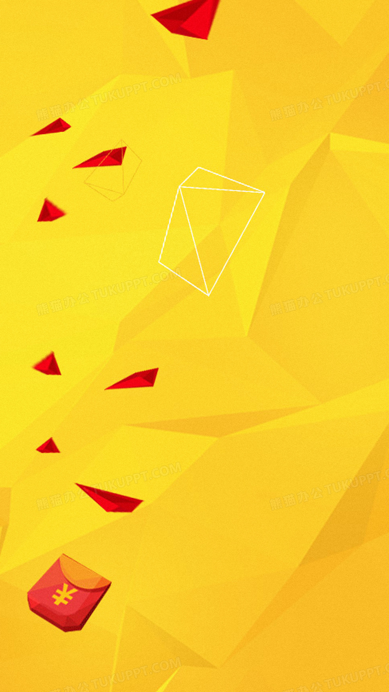 本作品内容为红黄几何渐变H5背景, 格式为 jpg, 图片尺寸为1080 x 1920, 作品中背景图片无需修改, 源文件无水印,可以直接使用, 欢迎使用熊猫办公。 如认为平台内容涉嫌侵权,可通过邮件:tousu@tukuppt.com提出书面通知,我们将及时处理。