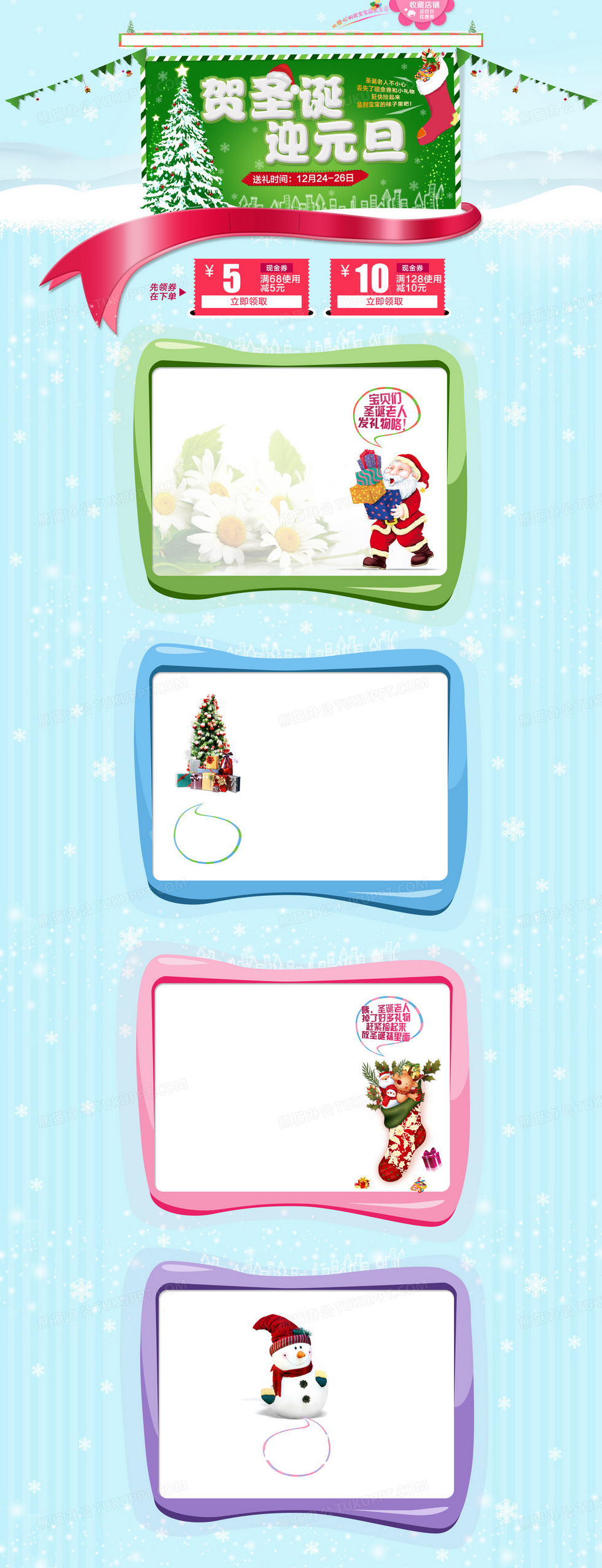 本作品内容为圣诞节首页背景, 格式为 psd, 图片尺寸为1920 x 5000, 作品中背景图片无需修改, 源文件无水印,可以直接使用, 欢迎使用熊猫办公。 如认为平台内容涉嫌侵权,可通过邮件:tousu@tukuppt.com提出书面通知,我们将及时处理。