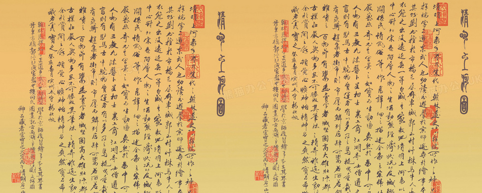 本作品内容为清明上河图书法网站背景图, 格式为 psd, 图片尺寸为2200 x 880, 作品中背景图片无需修改, 源文件无水印,可以直接使用, 欢迎使用熊猫办公。 如认为平台内容涉嫌侵权,可通过邮件:tousu@tukuppt.com提出书面通知,我们将及时处理。