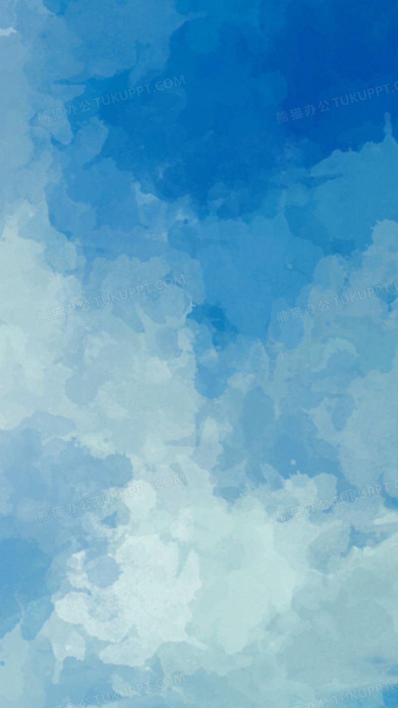 本作品内容为蓝色水彩白云手机端H5背景, 格式为 jpg, 图片尺寸为1080 x 1920, 作品中背景图片无需修改, 源文件无水印,可以直接使用, 欢迎使用熊猫办公。 如认为平台内容涉嫌侵权,可通过邮件:tousu@tukuppt.com提出书面通知,我们将及时处理。