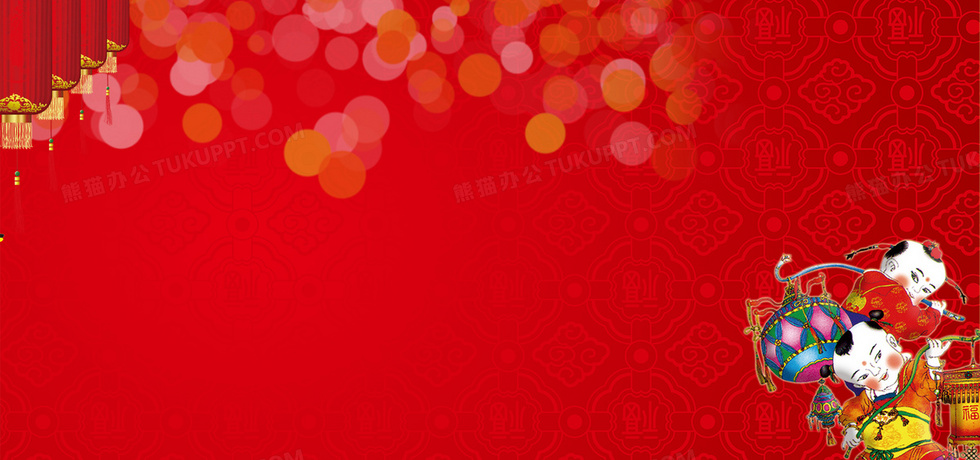 本作品内容为中国红喜庆节日背景, 格式为 psd, 图片尺寸为1920 x 900, 作品中背景图片无需修改, 源文件无水印,可以直接使用, 欢迎使用熊猫办公。 如认为平台内容涉嫌侵权,可通过邮件:tousu@tukuppt.com提出书面通知,我们将及时处理。