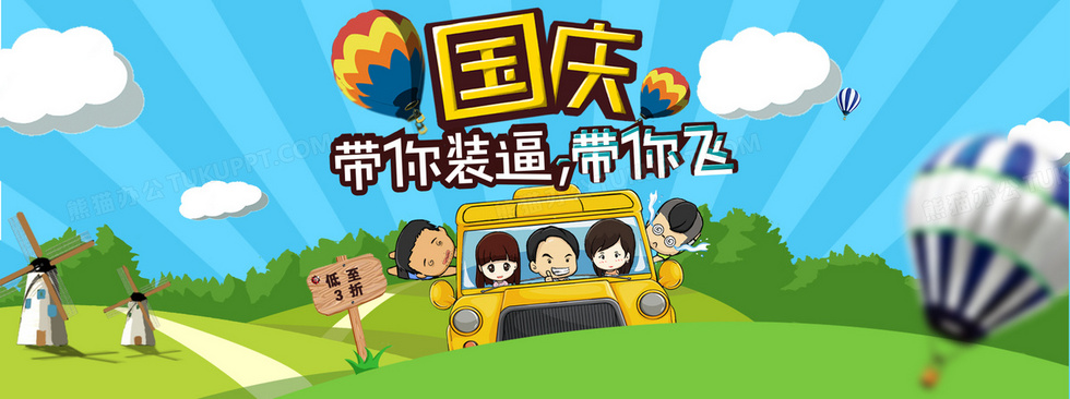 本作品内容为卡通国庆背景, 格式为 psd, 图片尺寸为1920 x 717, 作品中背景图片无需修改, 源文件无水印,可以直接使用, 欢迎使用熊猫办公。 如认为平台内容涉嫌侵权,可通过邮件:tousu@tukuppt.com提出书面通知,我们将及时处理。