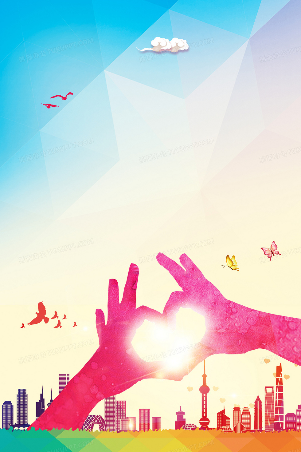 本作品内容为文明城市宣传海报背景素材, 格式为 psd, 图片尺寸为3150 x 4724, 作品中背景图片无需修改, 源文件无水印,可以直接使用, 欢迎使用熊猫办公。 如认为平台内容涉嫌侵权,可通过邮件:tousu@tukuppt.com提出书面通知,我们将及时处理。