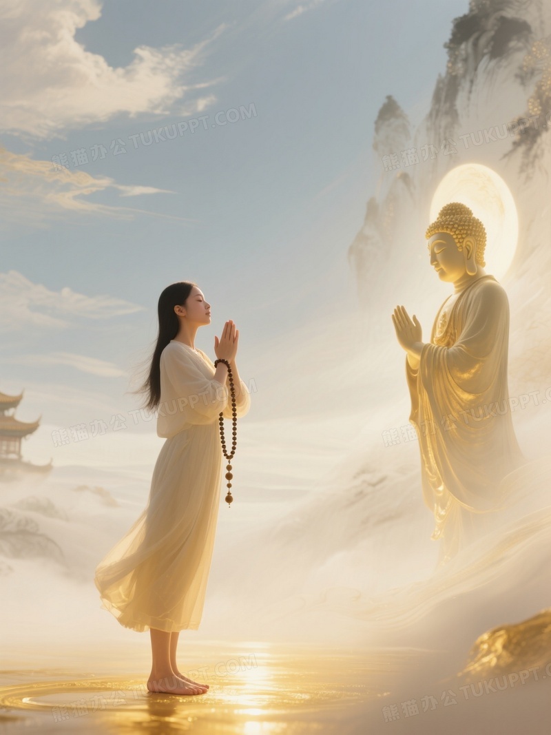 本作品内容为一个女子面对天空的佛祖礼拜, 格式为 jpg, 大小1 MB, 图片尺寸为1104 x 1472, 源文件无水印, 欢迎使用熊猫办公。 如认为平台内容涉嫌侵权,可通过邮件:tousu@tukuppt.com提出书面通知,我们将及时处理。