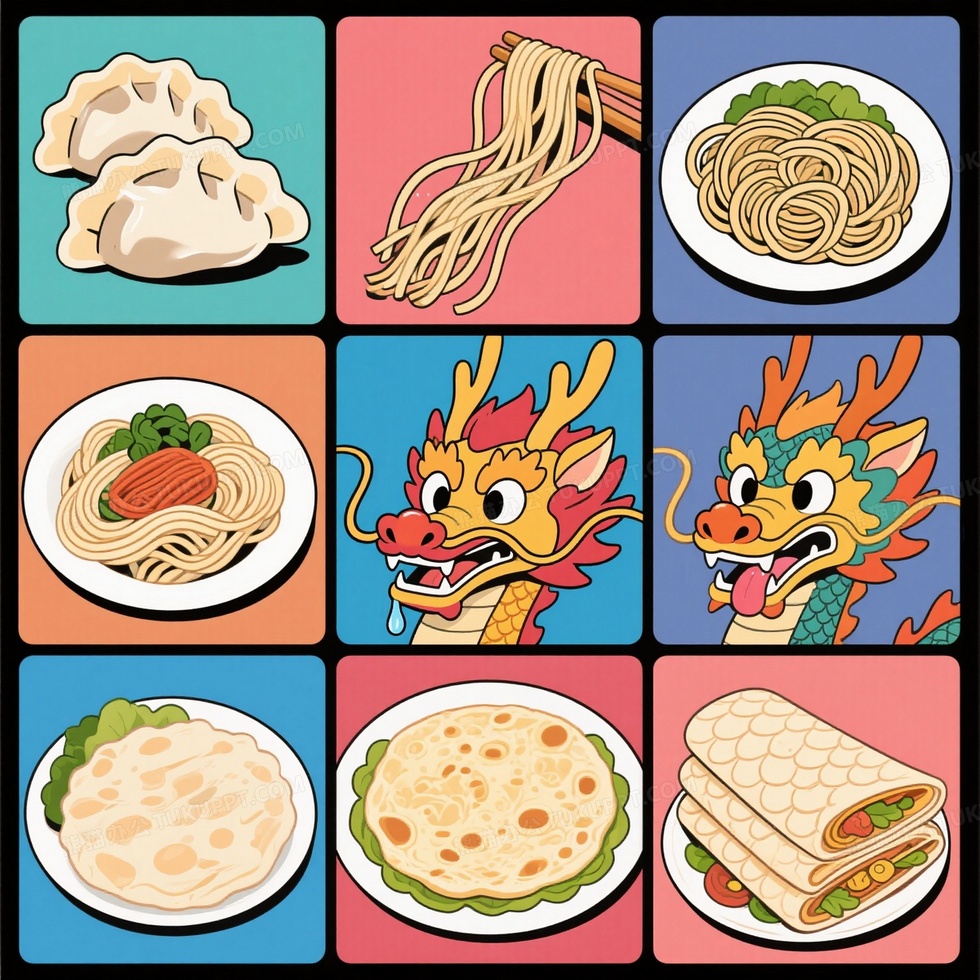 本作品内容为九宫格拼图饺子龙耳面条, 格式为 jpg, 大小1 MB, 图片尺寸为1536 x 1536, 源文件无水印, 欢迎使用熊猫办公。 如认为平台内容涉嫌侵权,可通过邮件:tousu@tukuppt.com提出书面通知,我们将及时处理。