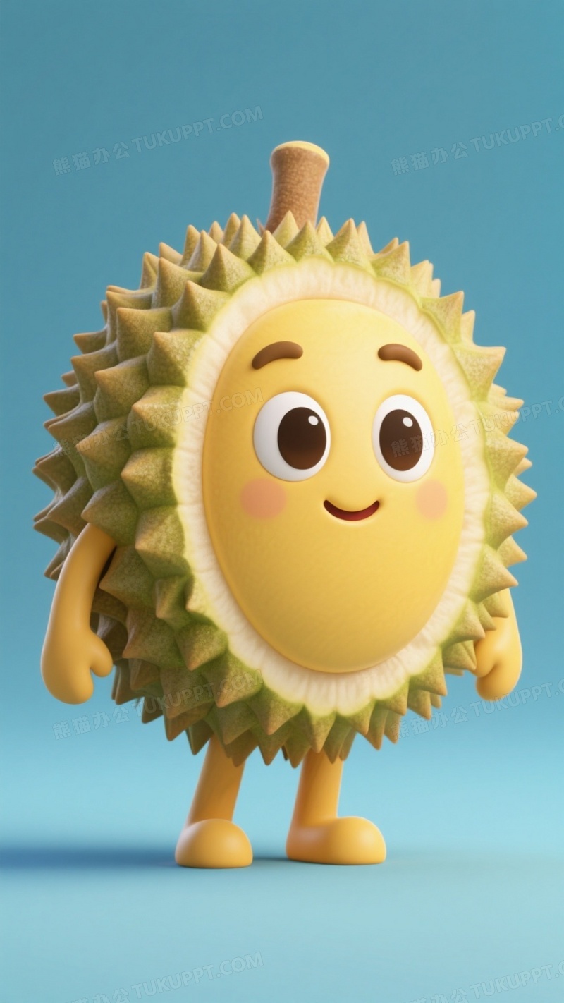 本作品内容为拟人化3D卡通水果榴莲, 格式为 jpg, 大小1 MB, 图片尺寸为936 x 1664, 源文件无水印, 欢迎使用熊猫办公。 如认为平台内容涉嫌侵权,可通过邮件:tousu@tukuppt.com提出书面通知,我们将及时处理。