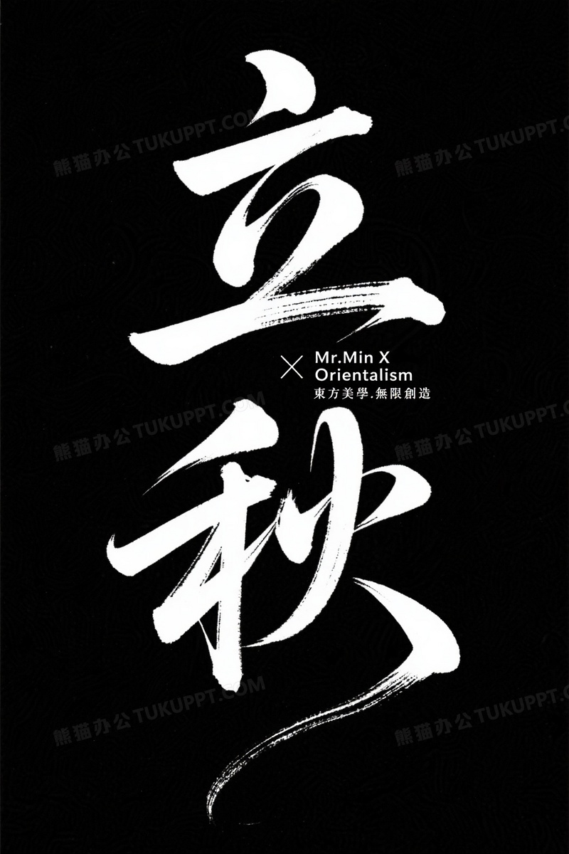 本作品内容为黑底白字字体设计立秋, 格式为 jpg, 大小1 MB, 图片尺寸为1056 x 1584, 源文件无水印, 欢迎使用熊猫办公。 如认为平台内容涉嫌侵权,可通过邮件:tousu@tukuppt.com提出书面通知,我们将及时处理。