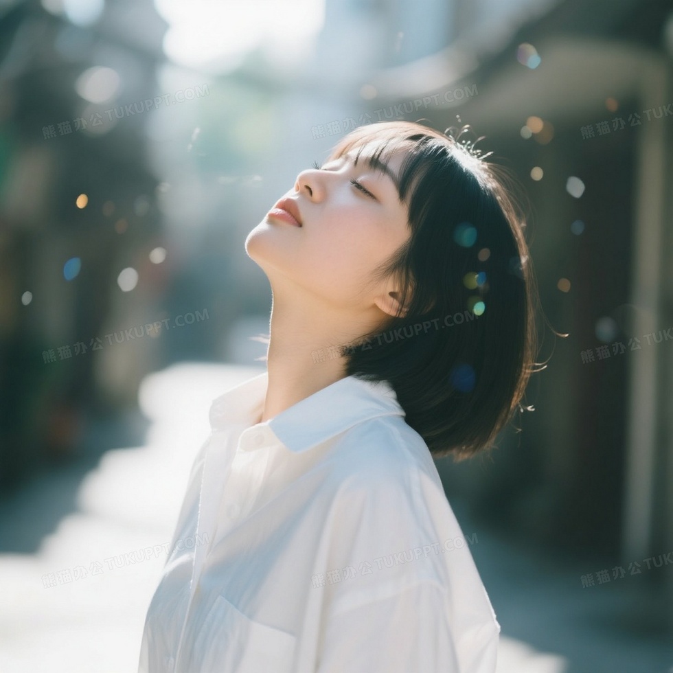 本作品内容为街头女孩仰头闭目阳光在睫毛投下细碎光斑, 格式为 jpg, 大小1 MB, 图片尺寸为1328 x 1328, 源文件无水印, 欢迎使用熊猫办公。 如认为平台内容涉嫌侵权,可通过邮件:tousu@tukuppt.com提出书面通知,我们将及时处理。