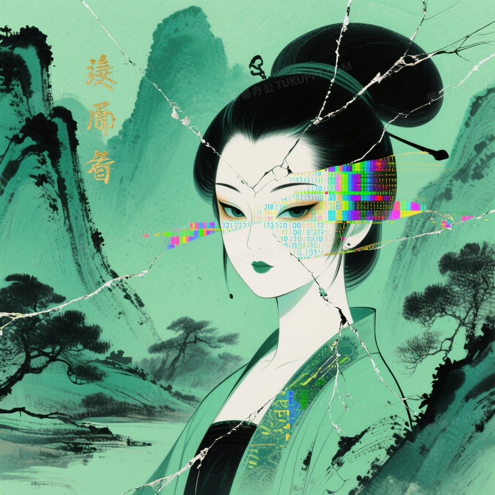 本作品内容为风格融合水墨晕染×数字故障美学视觉元素, 格式为 jpg, 大小1 MB, 图片尺寸为1328 x 1328, 源文件无水印, 欢迎使用熊猫办公。 如认为平台内容涉嫌侵权,可通过邮件:tousu@tukuppt.com提出书面通知,我们将及时处理。