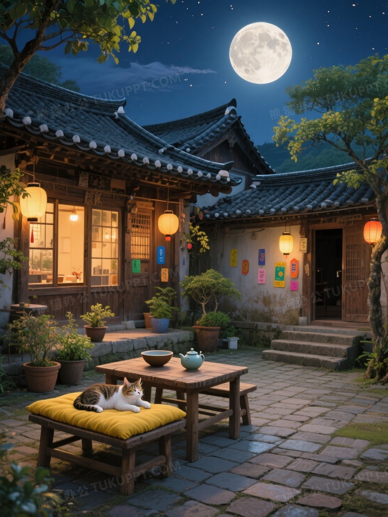 本作品内容为描绘了一个夜晚村庄里古朴的传统庭院, 格式为 jpg, 大小1 MB, 图片尺寸为1104 x 1472, 源文件无水印, 欢迎使用熊猫办公。 如认为平台内容涉嫌侵权,可通过邮件:tousu@tukuppt.com提出书面通知,我们将及时处理。