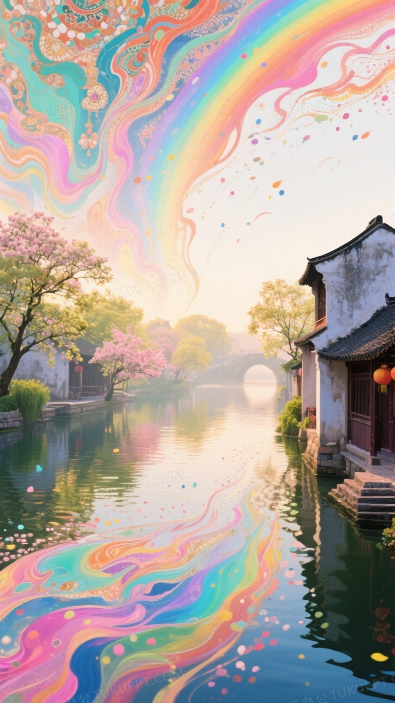 本作品内容为由彩虹粒子散发出江南水乡春天晨曦美景, 格式为 jpg, 大小1 MB, 图片尺寸为936 x 1664, 源文件无水印, 欢迎使用熊猫办公。 如认为平台内容涉嫌侵权,可通过邮件:tousu@tukuppt.com提出书面通知,我们将及时处理。