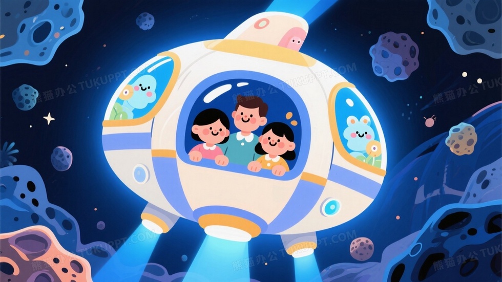本作品内容为温馨可爱的卡通插画一家人坐在造型独特的宇宙飞船中, 格式为 jpg, 大小1 MB, 图片尺寸为1664 x 936, 源文件无水印, 欢迎使用熊猫办公。 如认为平台内容涉嫌侵权,可通过邮件:tousu@tukuppt.com提出书面通知,我们将及时处理。