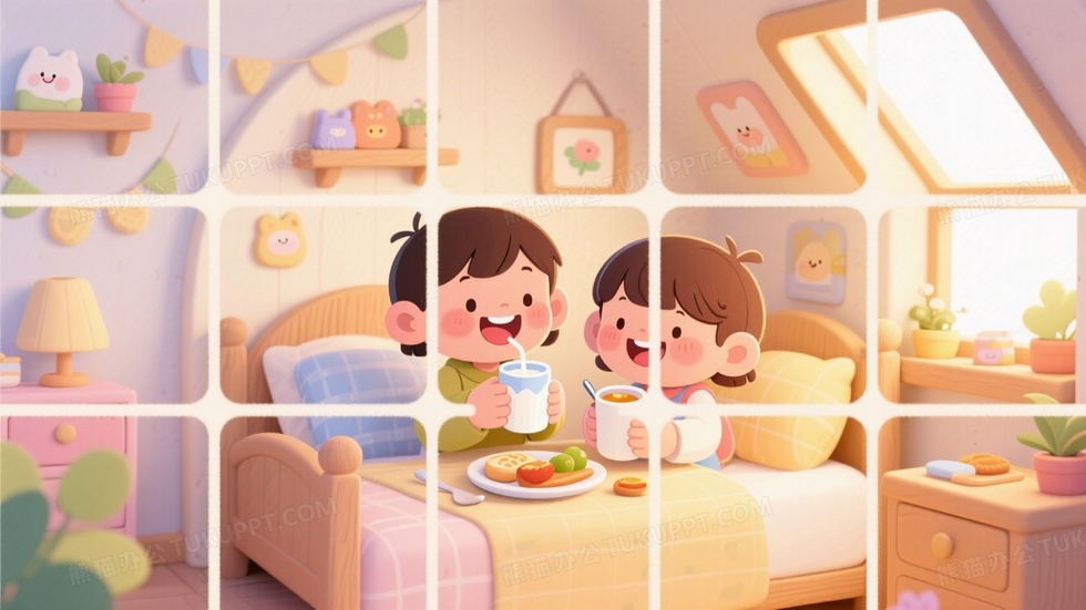 本作品内容为温馨卡通插画小朋友在温馨的小房间吃早餐, 格式为 jpg, 大小1 MB, 图片尺寸为1664 x 936, 源文件无水印, 欢迎使用熊猫办公。 如认为平台内容涉嫌侵权,可通过邮件:tousu@tukuppt.com提出书面通知,我们将及时处理。