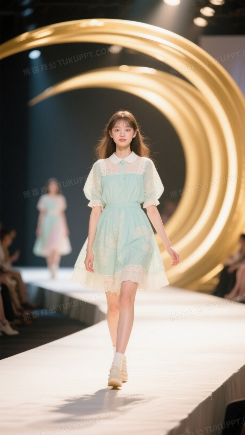 本作品内容为小清新风格的T台走秀图, 格式为 jpg, 大小1 MB, 图片尺寸为936 x 1664, 源文件无水印, 欢迎使用熊猫办公。 如认为平台内容涉嫌侵权,可通过邮件:tousu@tukuppt.com提出书面通知,我们将及时处理。