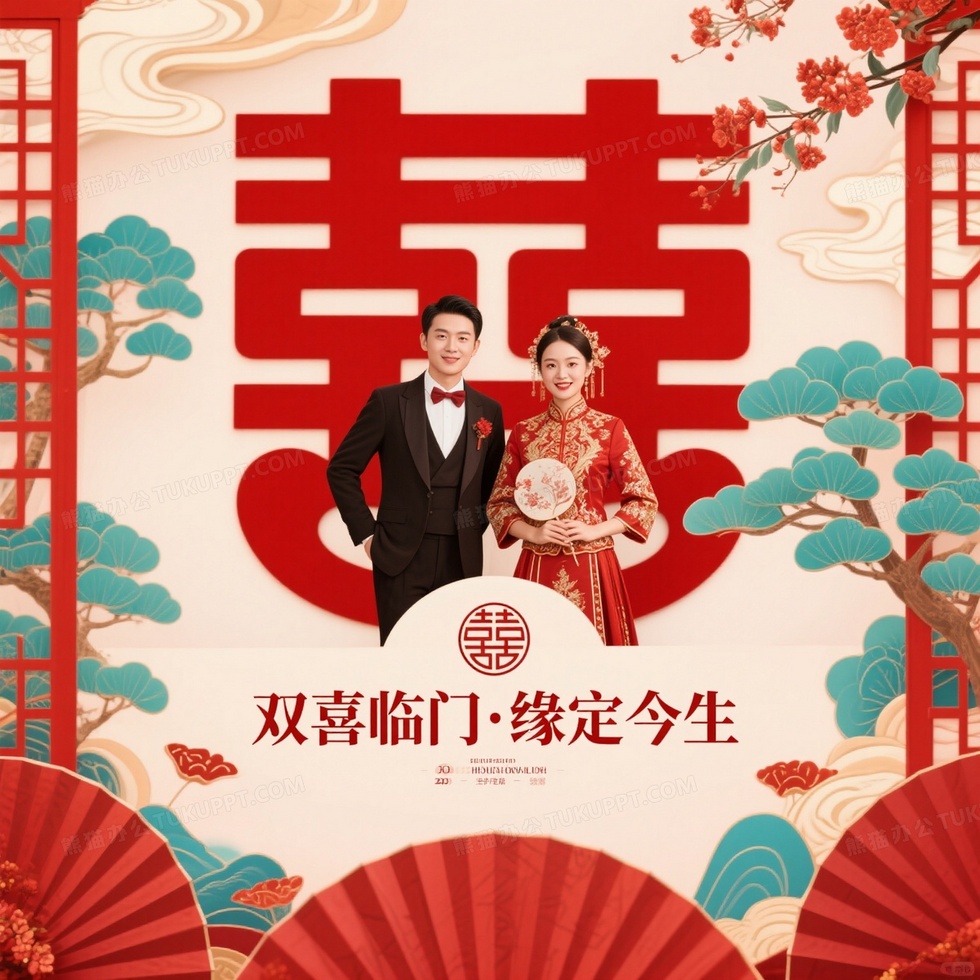 本作品内容为以双喜临门缘定今生为内核, 格式为 jpg, 大小1 MB, 图片尺寸为1536 x 1536, 源文件无水印, 欢迎使用熊猫办公。 如认为平台内容涉嫌侵权,可通过邮件:tousu@tukuppt.com提出书面通知,我们将及时处理。
