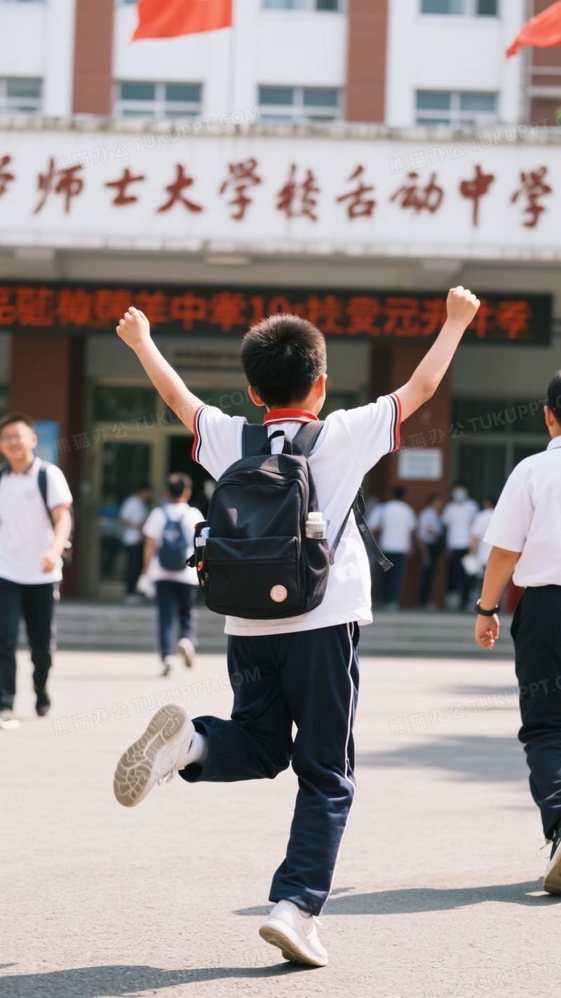 本作品内容为一个男孩背上走进中考考场, 格式为 jpg, 大小1 MB, 图片尺寸为936 x 1664, 源文件无水印, 欢迎使用熊猫办公。 如认为平台内容涉嫌侵权,可通过邮件:tousu@tukuppt.com提出书面通知,我们将及时处理。