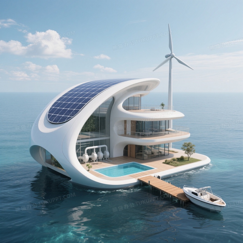 本作品内容为一座造型极具未来感的漂浮海上别墅, 格式为 jpg, 大小1 MB, 图片尺寸为1536 x 1536, 源文件无水印, 欢迎使用熊猫办公。 如认为平台内容涉嫌侵权,可通过邮件:tousu@tukuppt.com提出书面通知,我们将及时处理。