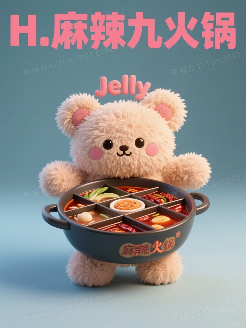本作品内容为H重庆美食把重庆九宫格火锅这道菜变成Jellycat风格玩偶, 格式为 jpg, 大小1 MB, 图片尺寸为1104 x 1472, 源文件无水印, 欢迎使用熊猫办公。 如认为平台内容涉嫌侵权,可通过邮件:tousu@tukuppt.com提出书面通知,我们将及时处理。
