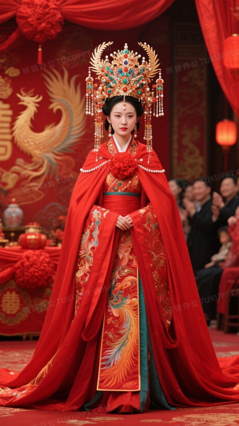 本作品内容为中国新娘在传统婚礼上穿戴凤冠霞帔, 格式为 jpg, 大小1 MB, 图片尺寸为936 x 1664, 源文件无水印, 欢迎使用熊猫办公。 如认为平台内容涉嫌侵权,可通过邮件:tousu@tukuppt.com提出书面通知,我们将及时处理。