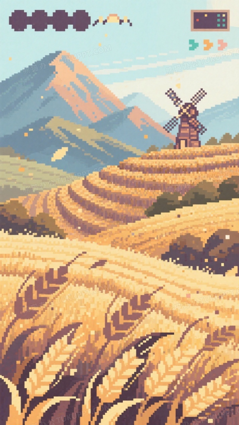 本作品内容为8位像素风山川麦田16bit色阶渲染梯田层次, 格式为 jpg, 大小1 MB, 图片尺寸为936 x 1664, 源文件无水印, 欢迎使用熊猫办公。 如认为平台内容涉嫌侵权,可通过邮件:tousu@tukuppt.com提出书面通知,我们将及时处理。