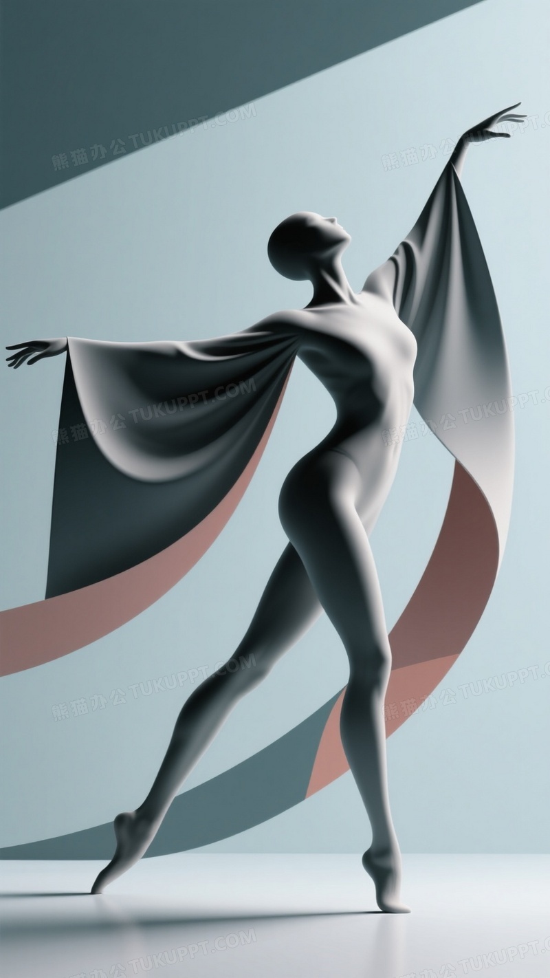 本作品内容为3D渲染舞者以宽大袖子为道具的舞蹈抽象化呈现, 格式为 jpg, 大小1 MB, 图片尺寸为936 x 1664, 源文件无水印, 欢迎使用熊猫办公。 如认为平台内容涉嫌侵权,可通过邮件:tousu@tukuppt.com提出书面通知,我们将及时处理。