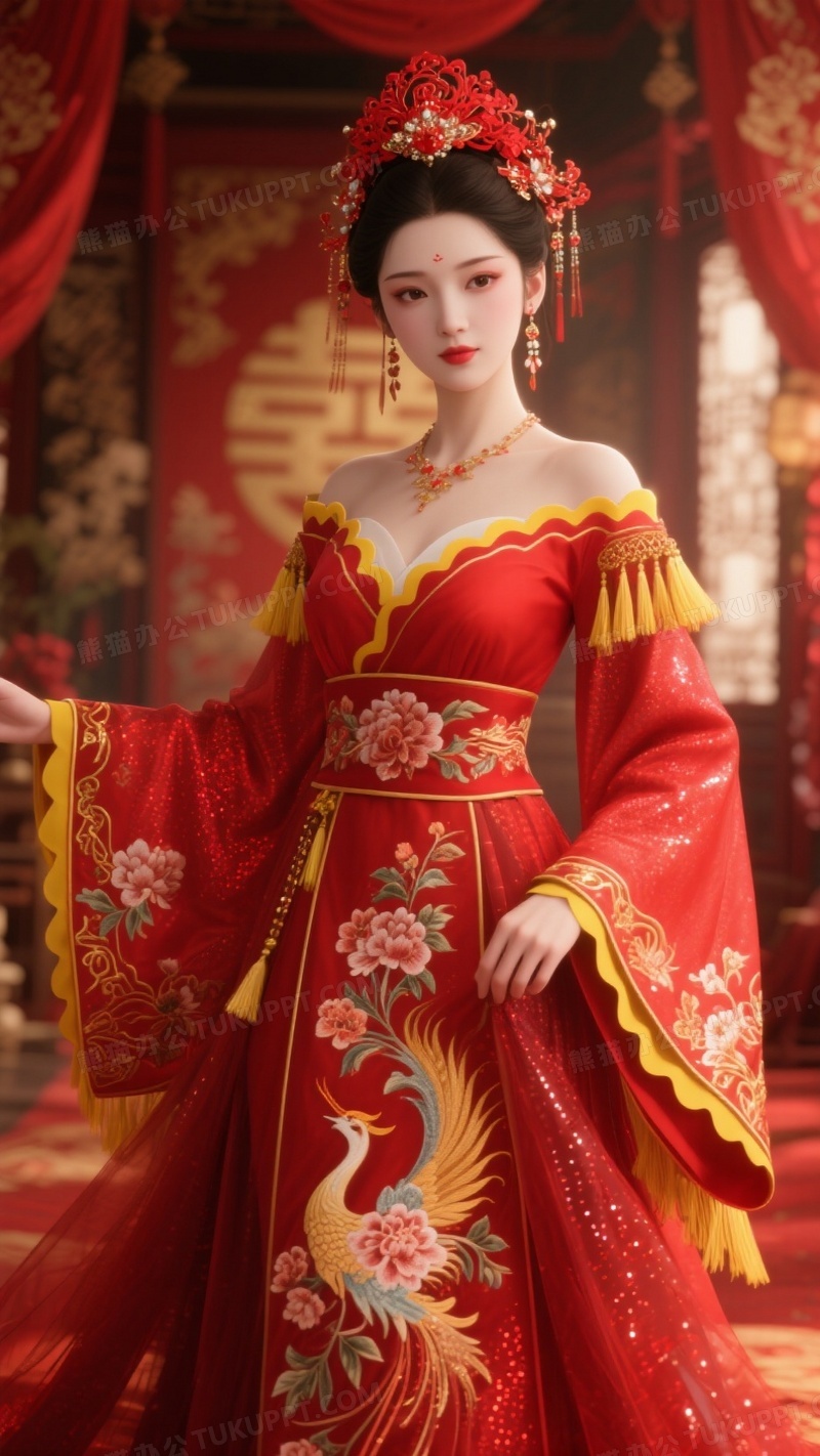 本作品内容为传统中式婚礼古代新娘婚服造型, 格式为 jpg, 大小1 MB, 图片尺寸为936 x 1664, 源文件无水印, 欢迎使用熊猫办公。 如认为平台内容涉嫌侵权,可通过邮件:tousu@tukuppt.com提出书面通知,我们将及时处理。