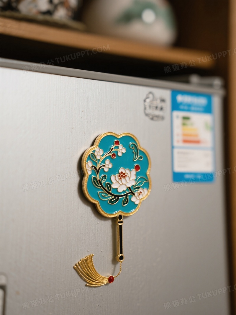 本作品内容为国风美学文创周边团扇掐丝珐琅工艺金属冰箱贴, 格式为 jpg, 大小1 MB, 图片尺寸为1104 x 1472, 源文件无水印, 欢迎使用熊猫办公。 如认为平台内容涉嫌侵权,可通过邮件:tousu@tukuppt.com提出书面通知,我们将及时处理。