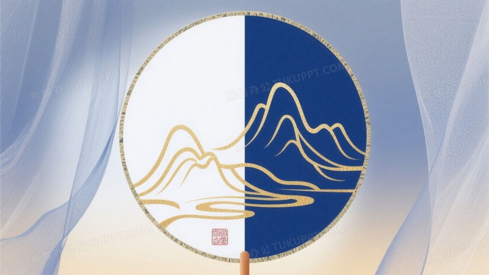 本作品内容为新中式几何团扇插画圆形构图分割成靛蓝与月白扇形, 格式为 jpg, 大小1 MB, 图片尺寸为1664 x 936, 作品中背景图片无需修改, 源文件无水印,可以直接使用, 欢迎使用熊猫办公。 如认为平台内容涉嫌侵权,可通过邮件:tousu@tukuppt.com提出书面通知,我们将及时处理。