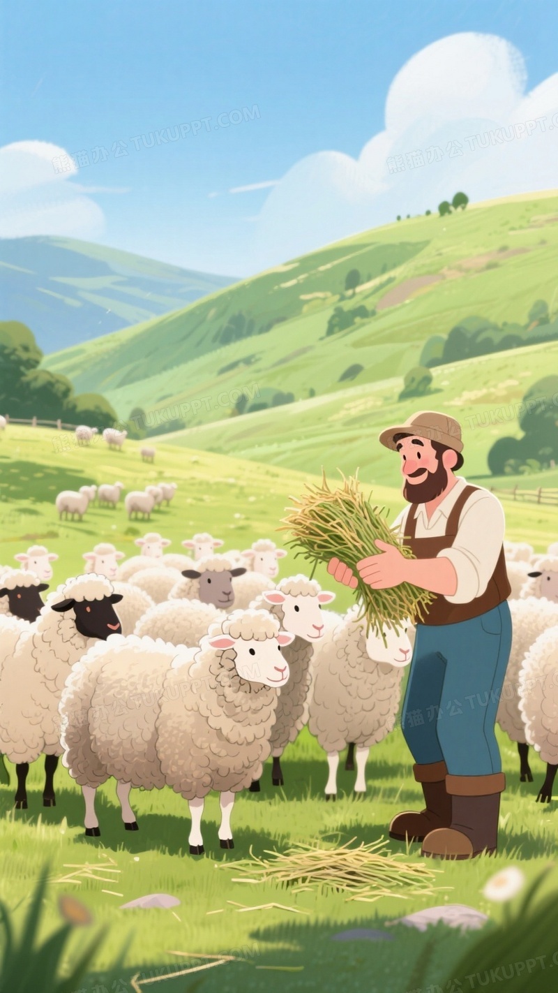 本作品内容为好看的高清卡通插画牧羊人拿着草料喂一群毛茸茸的绵羊, 格式为 jpg, 大小1 MB, 图片尺寸为936 x 1664, 源文件无水印, 欢迎使用熊猫办公。 如认为平台内容涉嫌侵权,可通过邮件:tousu@tukuppt.com提出书面通知,我们将及时处理。