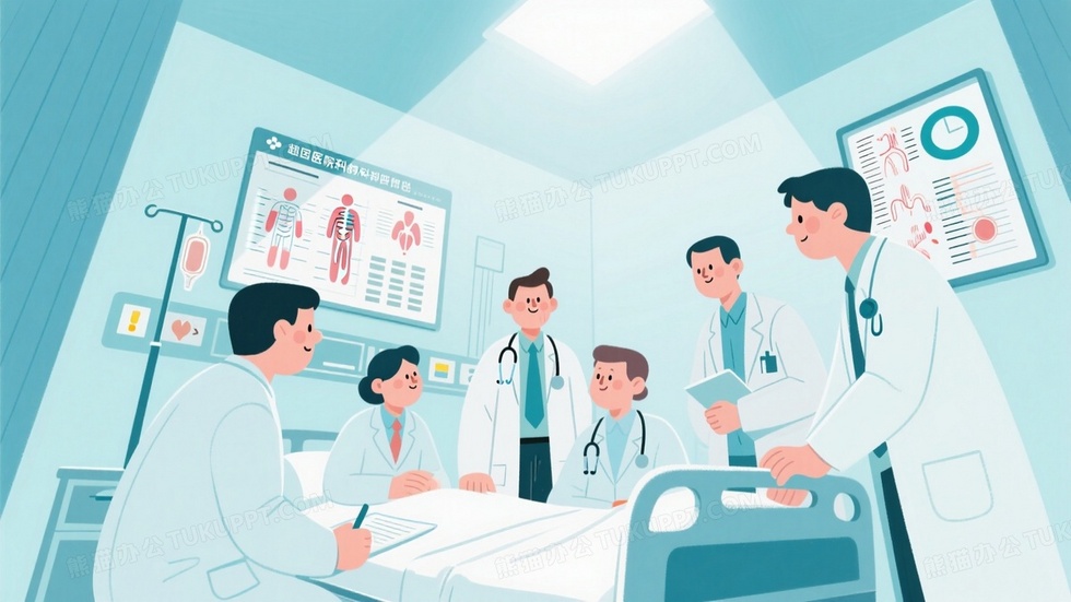 本作品内容为好看的医院科普插画一群医生围着病床讨论方案, 格式为 jpg, 大小1 MB, 图片尺寸为1664 x 936, 源文件无水印, 欢迎使用熊猫办公。 如认为平台内容涉嫌侵权,可通过邮件:tousu@tukuppt.com提出书面通知,我们将及时处理。