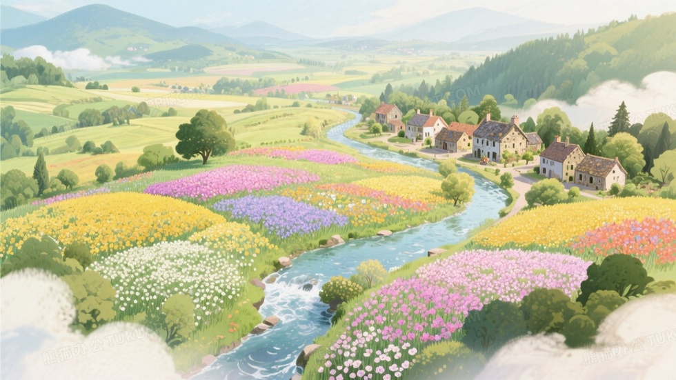 本作品内容为高清的自然风景插画从航拍视角展示了五彩斑斓的花海, 格式为 jpg, 大小1 MB, 图片尺寸为1664 x 936, 源文件无水印, 欢迎使用熊猫办公。 如认为平台内容涉嫌侵权,可通过邮件:tousu@tukuppt.com提出书面通知,我们将及时处理。