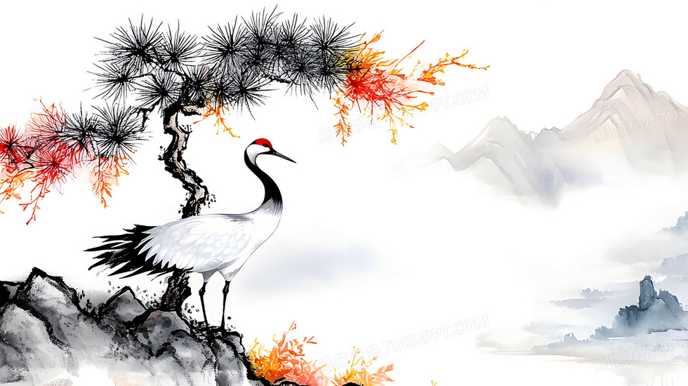 本作品内容为卡通风格中国水墨画水墨风动物白鹤仙鹤插画, 格式为 jpg, 大小2 MB, 图片尺寸为2912 x 1632, 源文件无水印, 欢迎使用熊猫办公。 如认为平台内容涉嫌侵权,可通过邮件:tousu@tukuppt.com提出书面通知,我们将及时处理。