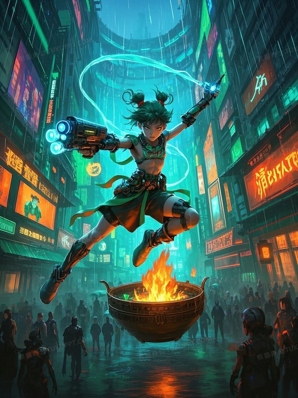 本作品内容为赛博朋克哪吒凌空跃于成都太古里, 格式为 jpg, 大小1 MB, 图片尺寸为1536 x 2048, 作品中背景图片无需修改, 源文件无水印,可以直接使用, 欢迎使用熊猫办公。 如认为平台内容涉嫌侵权,可通过邮件:tousu@tukuppt.com提出书面通知,我们将及时处理。