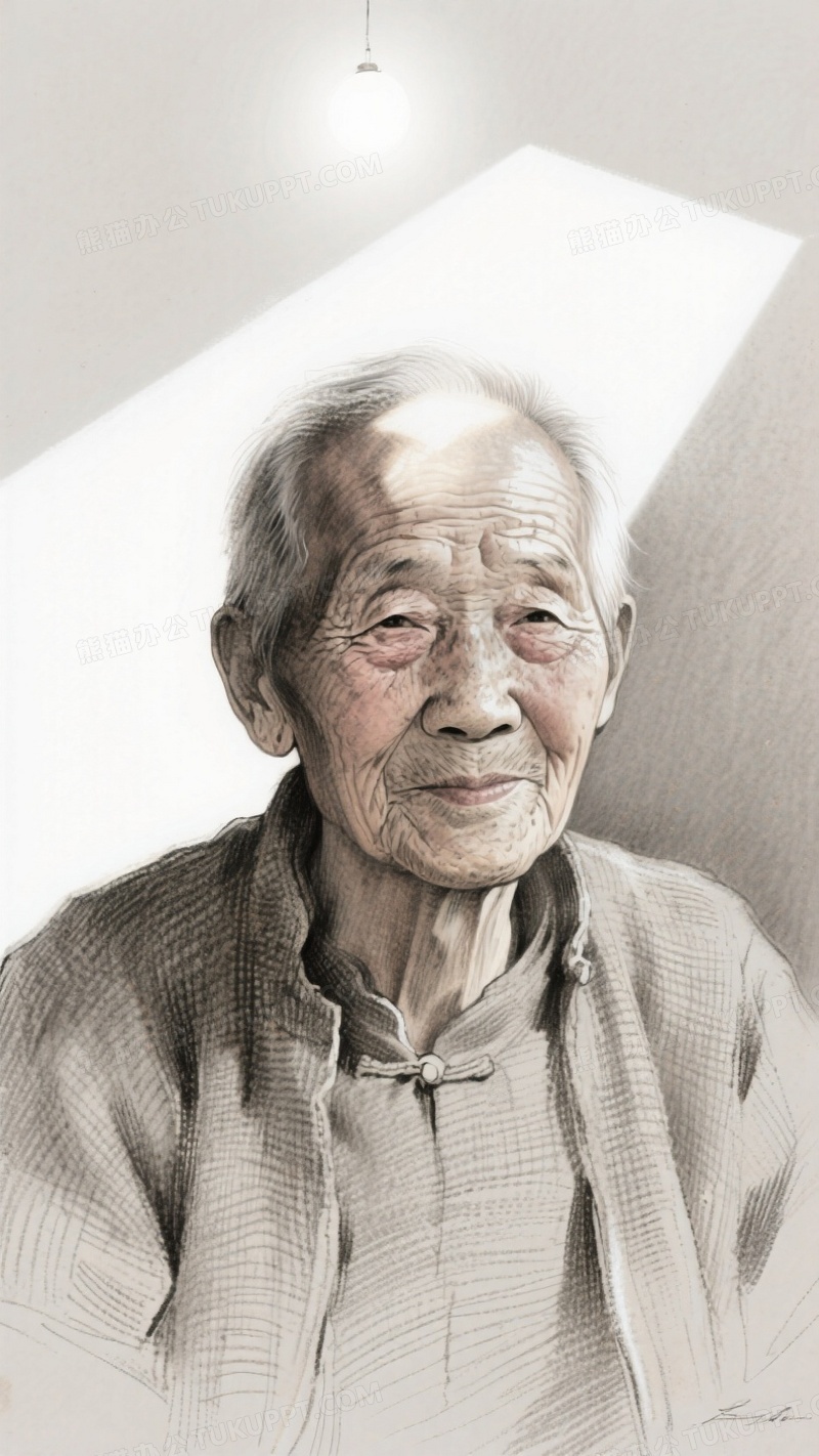 本作品内容为写实素描插画亚洲老人肖像, 格式为 jpg, 大小1 MB, 图片尺寸为936 x 1664, 源文件无水印, 欢迎使用熊猫办公。 如认为平台内容涉嫌侵权,可通过邮件:tousu@tukuppt.com提出书面通知,我们将及时处理。