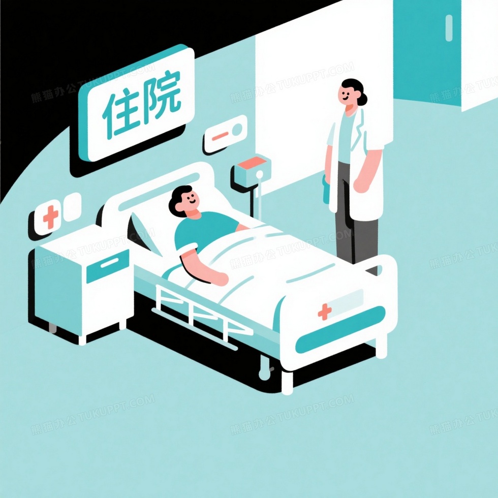 本作品内容为矢量风格插画住院概念插画, 格式为 jpg, 大小1 MB, 图片尺寸为1328 x 1328, 源文件无水印, 欢迎使用熊猫办公。 如认为平台内容涉嫌侵权,可通过邮件:tousu@tukuppt.com提出书面通知,我们将及时处理。