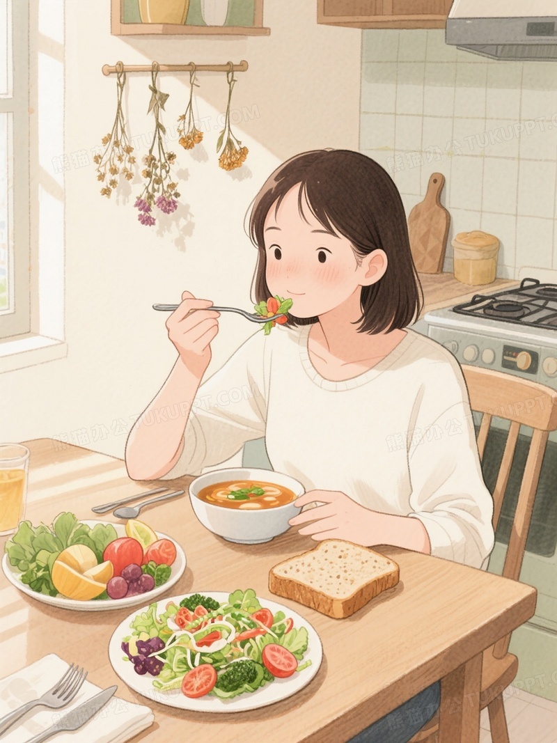 本作品内容为新鲜的水果蔬菜沙拉全麦面包和一碗热腾腾的汤, 格式为 jpg, 大小1 MB, 图片尺寸为1104 x 1472, 源文件无水印, 欢迎使用熊猫办公。 如认为平台内容涉嫌侵权,可通过邮件:tousu@tukuppt.com提出书面通知,我们将及时处理。