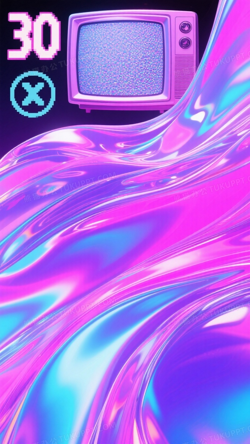 本作品内容为具有蒸汽波风格的抽象彩色酸性镭射玻璃流动壁纸海报背景, 格式为 jpg, 大小1 MB, 图片尺寸为936 x 1664, 源文件无水印, 欢迎使用熊猫办公。 如认为平台内容涉嫌侵权,可通过邮件:tousu@tukuppt.com提出书面通知,我们将及时处理。