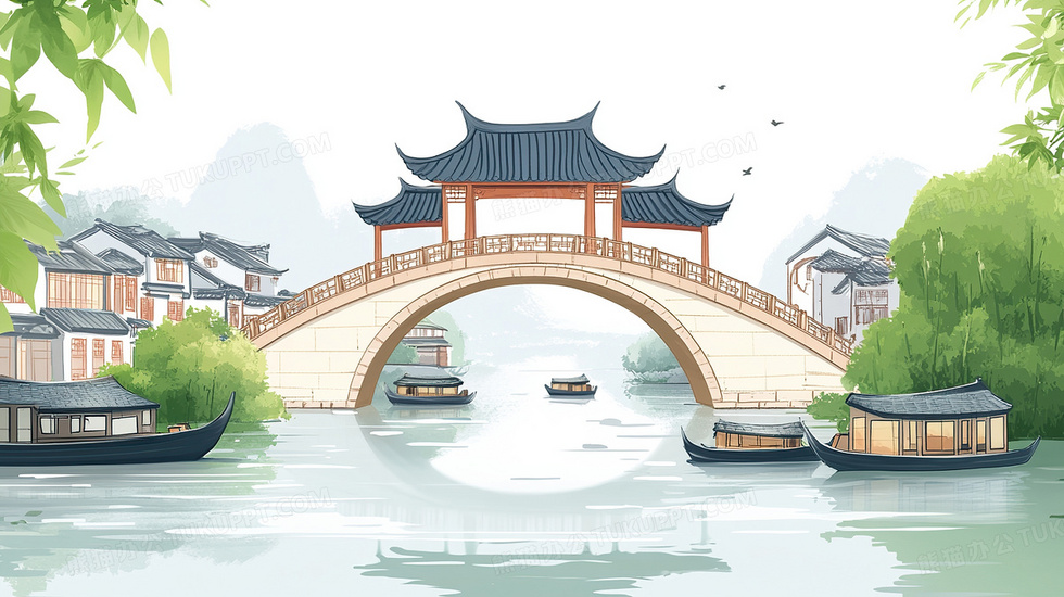 本作品内容为卡通风江南的桥插画, 格式为 jpg, 大小3 MB, 图片尺寸为2912 x 1632, 源文件无水印, 欢迎使用熊猫办公。 如认为平台内容涉嫌侵权,可通过邮件:tousu@tukuppt.com提出书面通知,我们将及时处理。
